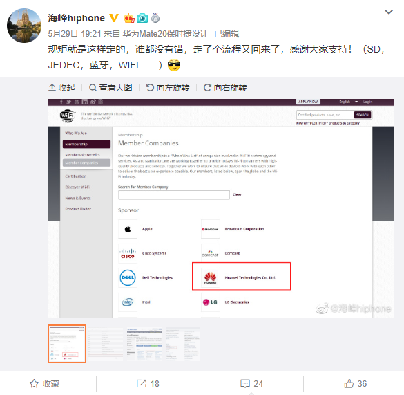 之前制定无线技术标准的Wi-Fi联盟、制定SD存储卡标准的SDA协会、蓝牙联盟以及JEDEC(固态技术协会)均将华为移出了会员名单,消息曝光后引发热议。不过,事件随后得到了“反转”,最新消息显示,上述组织机构会员页面已经重新出现了华为的名单。