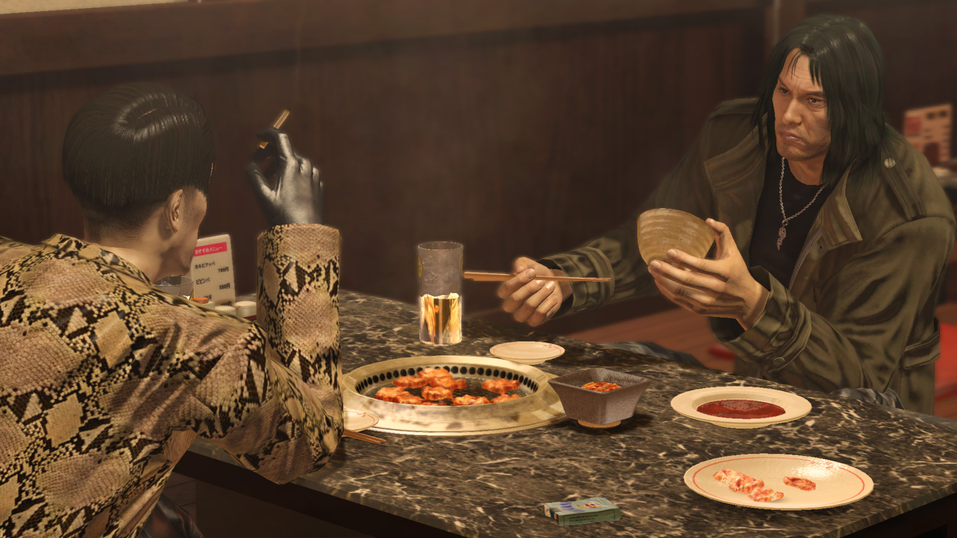 在神室町的烤肉店中,冴岛和结拜兄弟真岛吾朗一起度过入监前的最后时光。