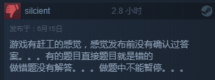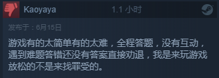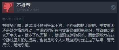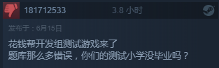 总体上来说,玩家们对于这款游戏的差评主要集中在游戏玩法单调,BUG 太多,其最为核心的玩法“答题”这一项上甚至存在“题干表述不清”、“答案有问题”的情况。