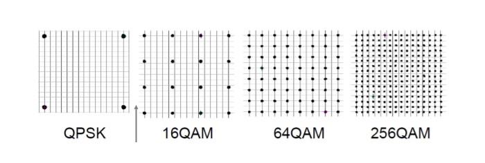 其中,调制方式决定无线信号子载波单个符号的数据密度,在相同频宽下,使用更高阶的调制技术就能实现更高速率的提升,而Wi-Fi 6采用便是更高阶的调制编码方案1024-QAM(Wi-Fi采用的是256-QAM),使其最大连接速率提升至9.6Gbps。