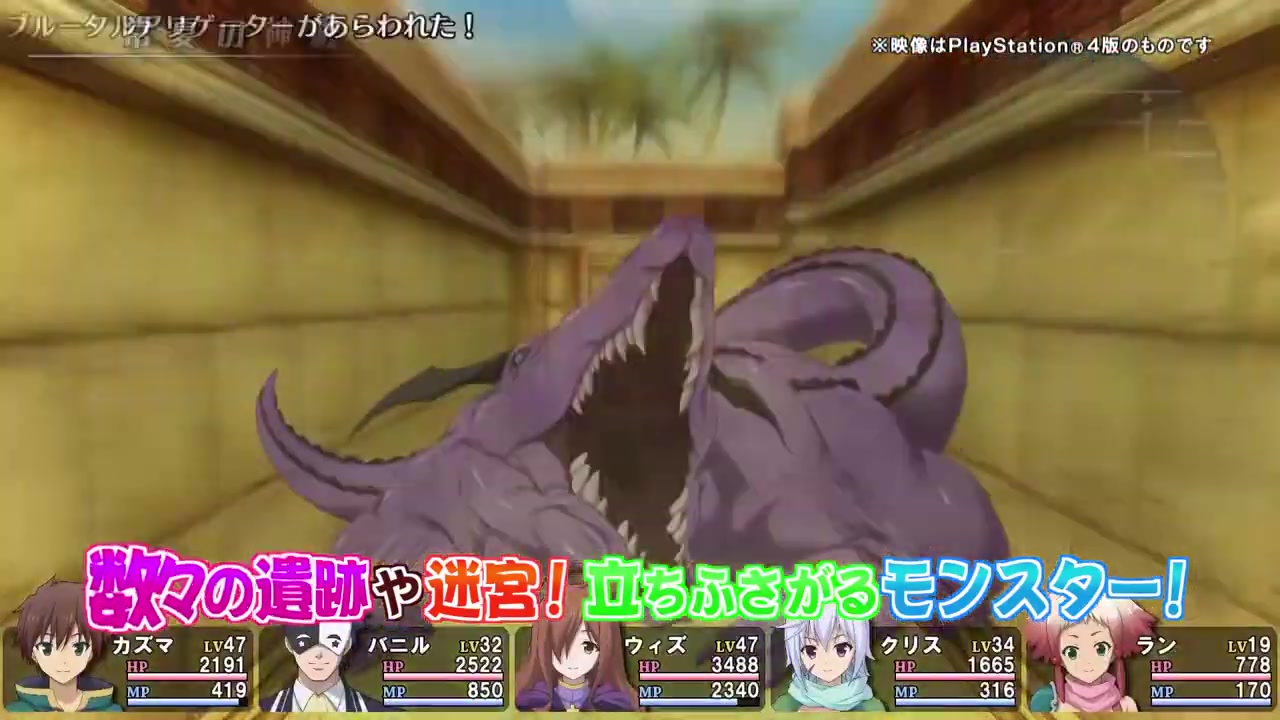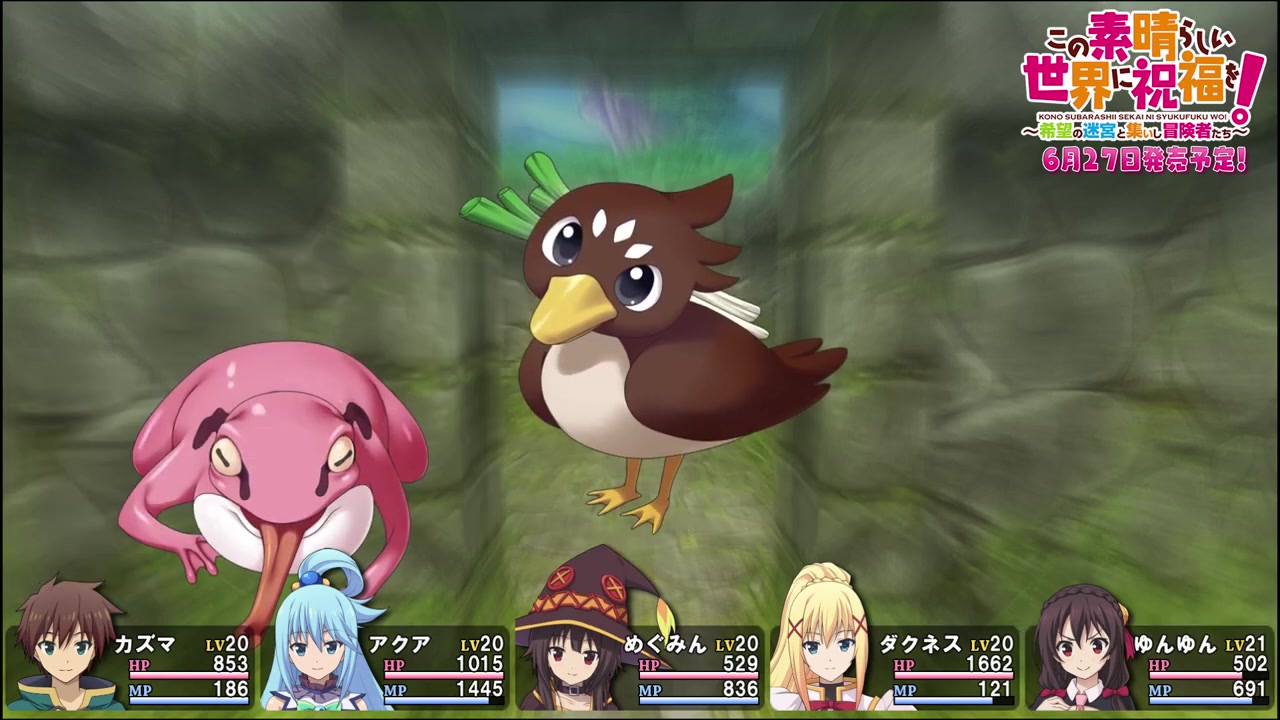 Entergram日前为即将推出的《为美好的世界献上祝福!》同名地下城探索JRPG游戏《为美好的世界献上祝福:希望的迷宫与集结的冒险者们》公布了一段新的7分钟实机视频和TV广告片。