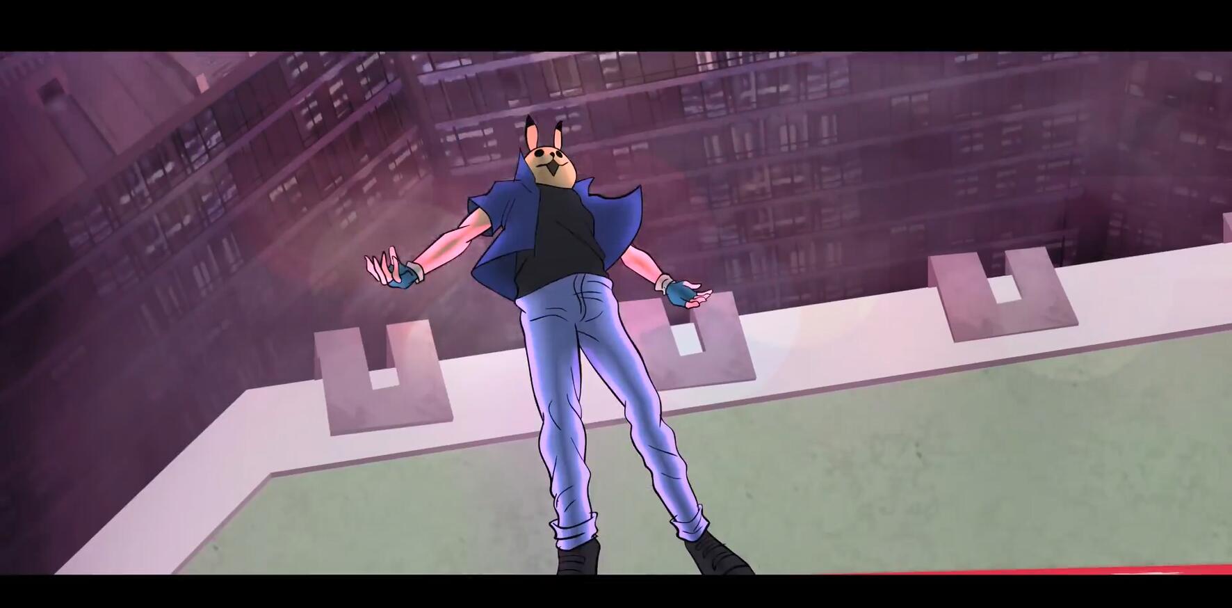 当然和优质的R级电影一样,短片中也不乏致敬和幽默。小智带着皮卡丘头套从高楼一跃而下显然是在致敬去年的高分动画电影《蜘蛛侠:平行宇宙》;而小霞和小智在一起后养育的孩子还真是喜闻乐见的波克比......