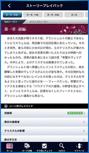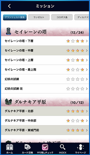 玩家可以与《FFBE》本体的游玩资料连动,确认在游戏内如「宝箱」、「探索」、「任务」「保险箱的钥匙」等未完事项的进度。