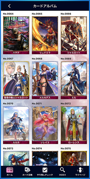 「卡片召唤」中获得的卡片全都能在此进行阅览。