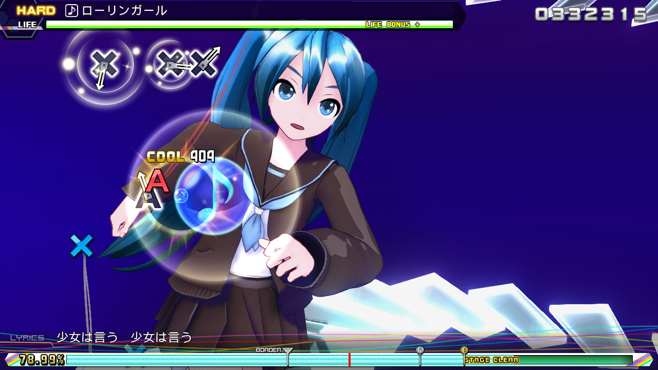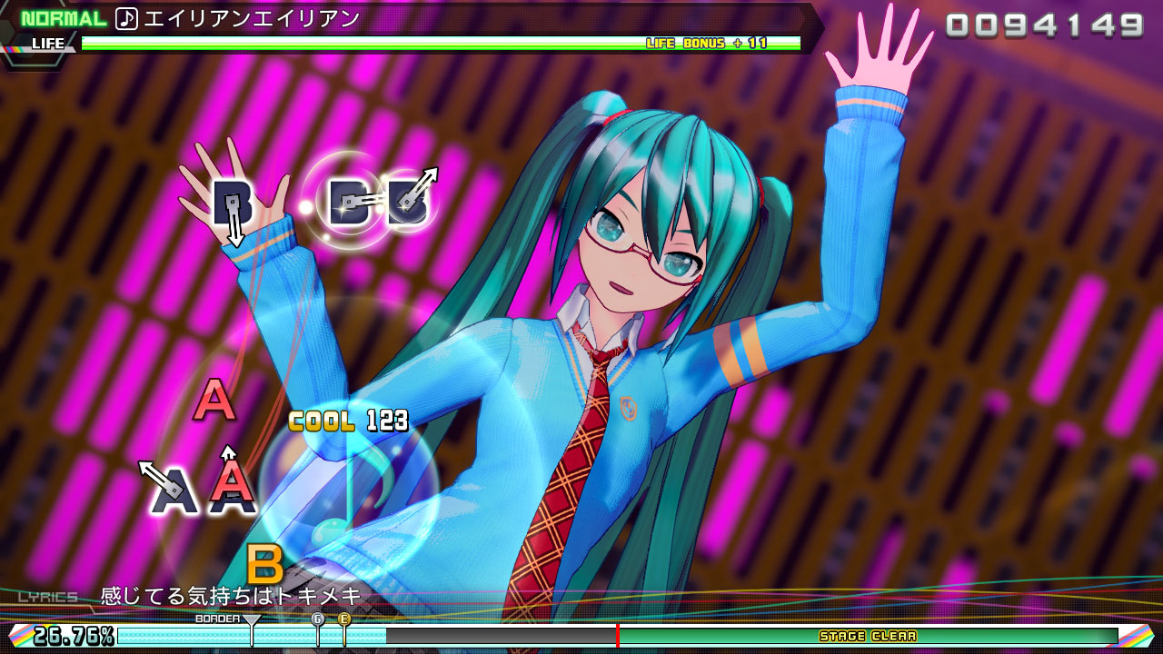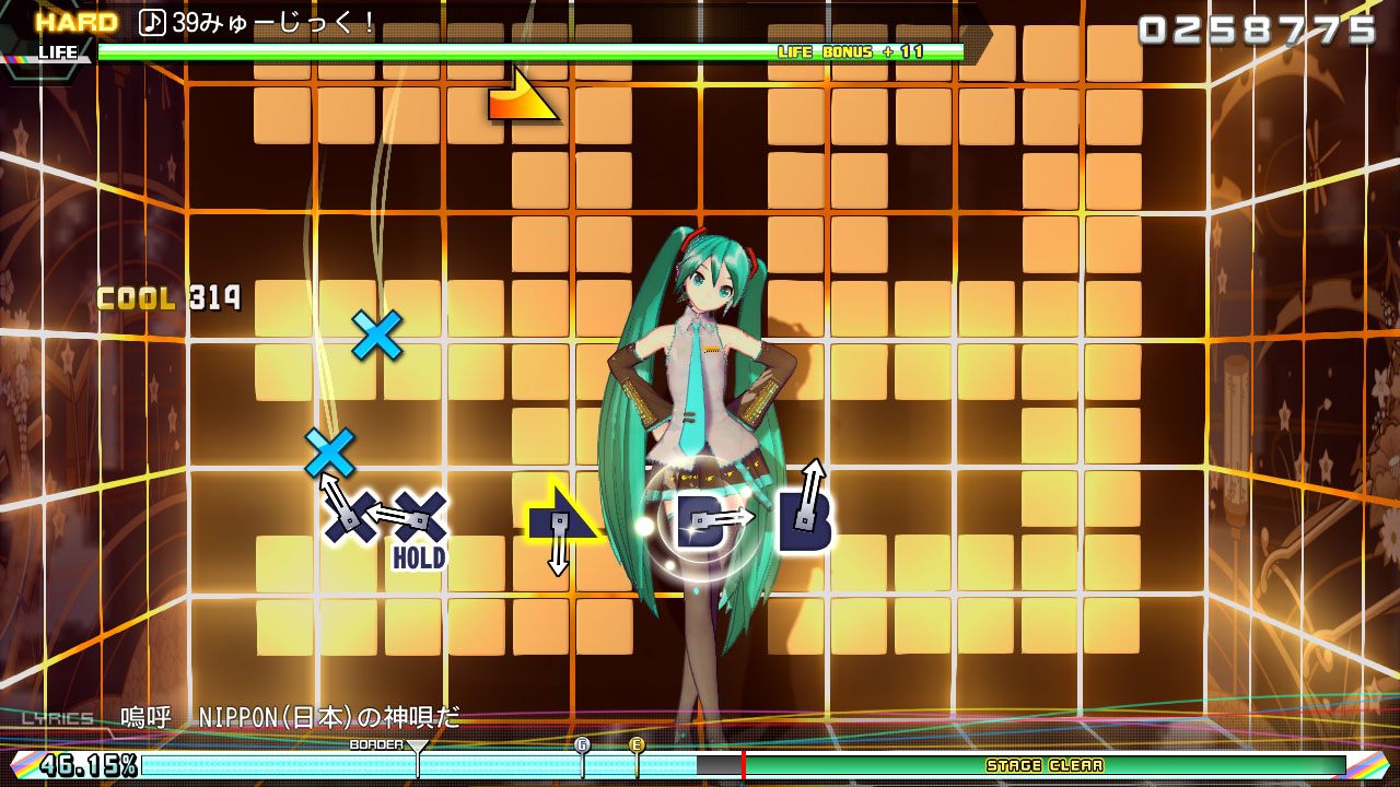 新收录于《初音未来:歌姬计划 Mega39's》的乐曲,包含专为本作所创作的新乐曲在内共有10首。可在3D立体化的初音未来角色们登场的PV或原创PV的影像中,畅享音乐节奏的游戏乐趣。