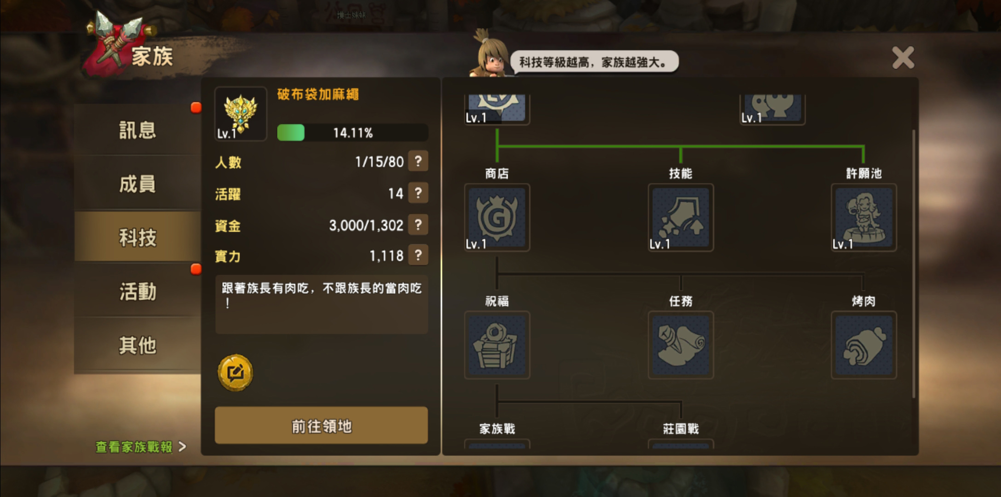 除此之外还能通过升级家族科技,来获得更多的Buff加成,加快我们获得家族贡献的速度。然后就能使用贡献在商店里购买到各式各样的魂石。