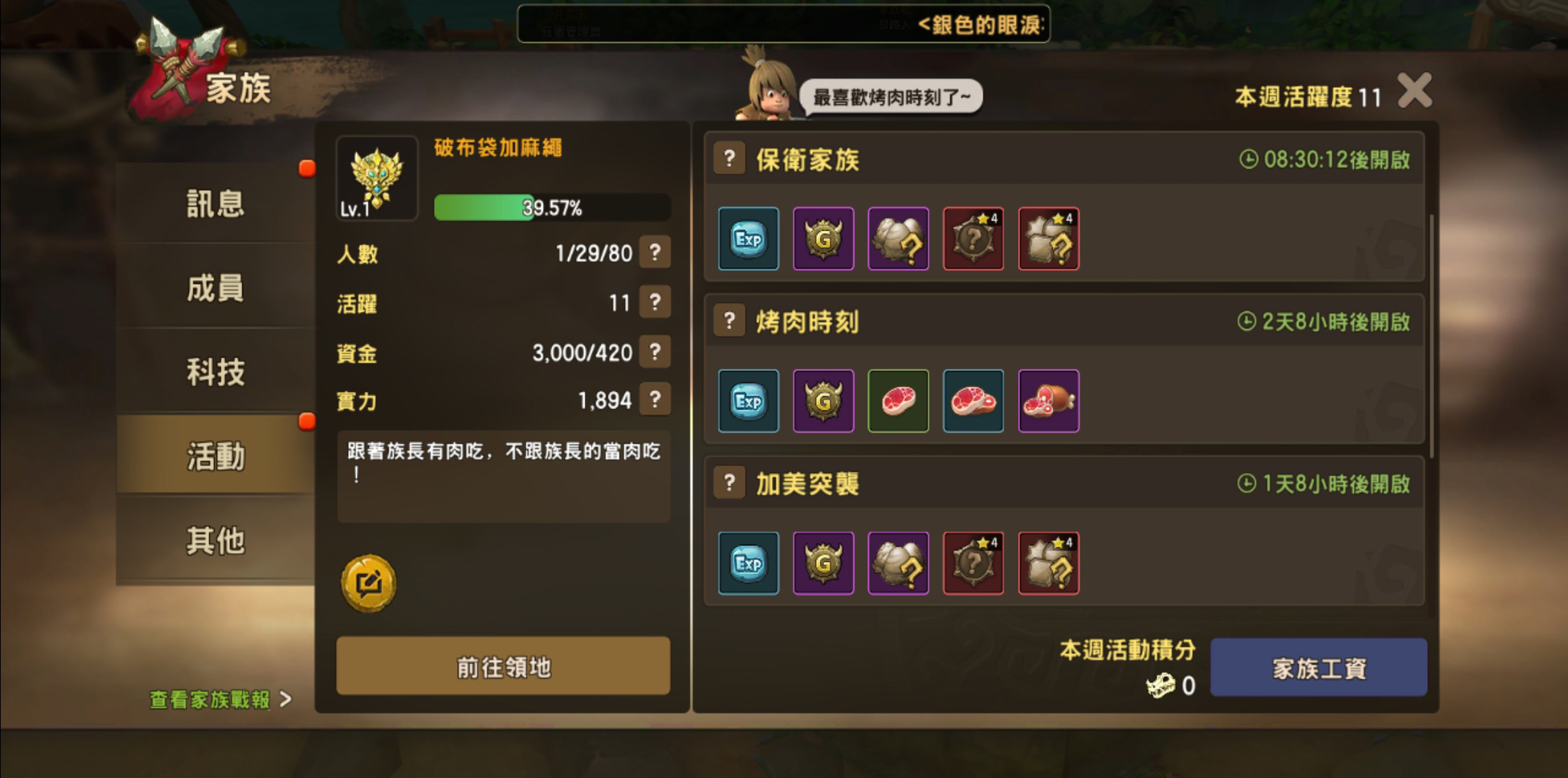 不过提到社交,最有趣的还是开创了网游先河的家族玩法,这个系统在本作中依旧得到了传承。在家族玩法中还拥有着自己独有的家族活动。从保卫家园到家族战等诸多活动,不仅有紧张刺激的PVP,也有优哉游哉的休闲向烤肉活动,不过相同的是每一种都需要集家族之力一同进行才能获取最大的收益。