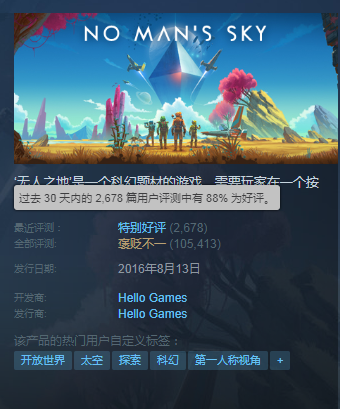 《无人深空》的开发商Hello Games的CEO就在采访中提到,在《无人深空》刚上线的时候,许许多多的玩家来指责游戏,但其中大部分连游戏都没有买,还不断要求开发商去修改那些他们无法更改的事物。最后反而是留下来的玩家为《无人深空》开发商提出了许多宝贵的合理建议,也帮助开发商将《无人深空》打造成如今游玩体验良好,玩家口碑非常高的作品。