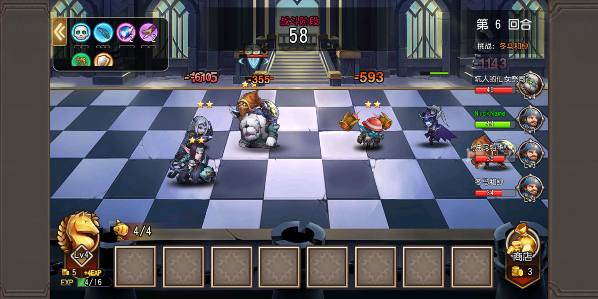 不仅如此,在“暴走棋”模式中,还根据这种界面对棋盘大小进行了一定的调整,4X3的棋盘大小远小于其他同类。棋盘小了,那么上场的棋子数量自然也会有所减少,将比同类产品的10人口,在本作中人口上限为6人口。