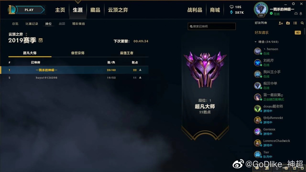 国服第二位大师玩家是一位路人玩家,而这个玩家整个排位赛也只打了72局,有趣的是,这位路人表示自己是神超的水友,是看神超直播学的技术。