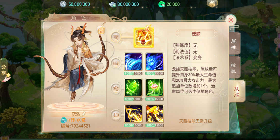 最后龙族还有一个独有的特殊技能—逆鳞。在使用后能够提升自身30%最大血量跟20%最大攻击力,还可以治愈倒地角色,冷却四回合,持续两回合。是一个相当实用的爆发与急救技能,在合适的时机使用甚至能能起到决定性的作用。