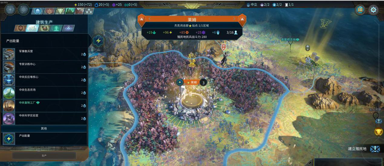 而建筑的搭建方式和表现方式,本应在这个游戏框架下表现的更加直观,如同《文明》那样,每个建筑清晰可见的摆放在地图上,但游戏只是简单的,带点象征意义的丢个大基地就完事了,这让玩家的成就感也下降不少。