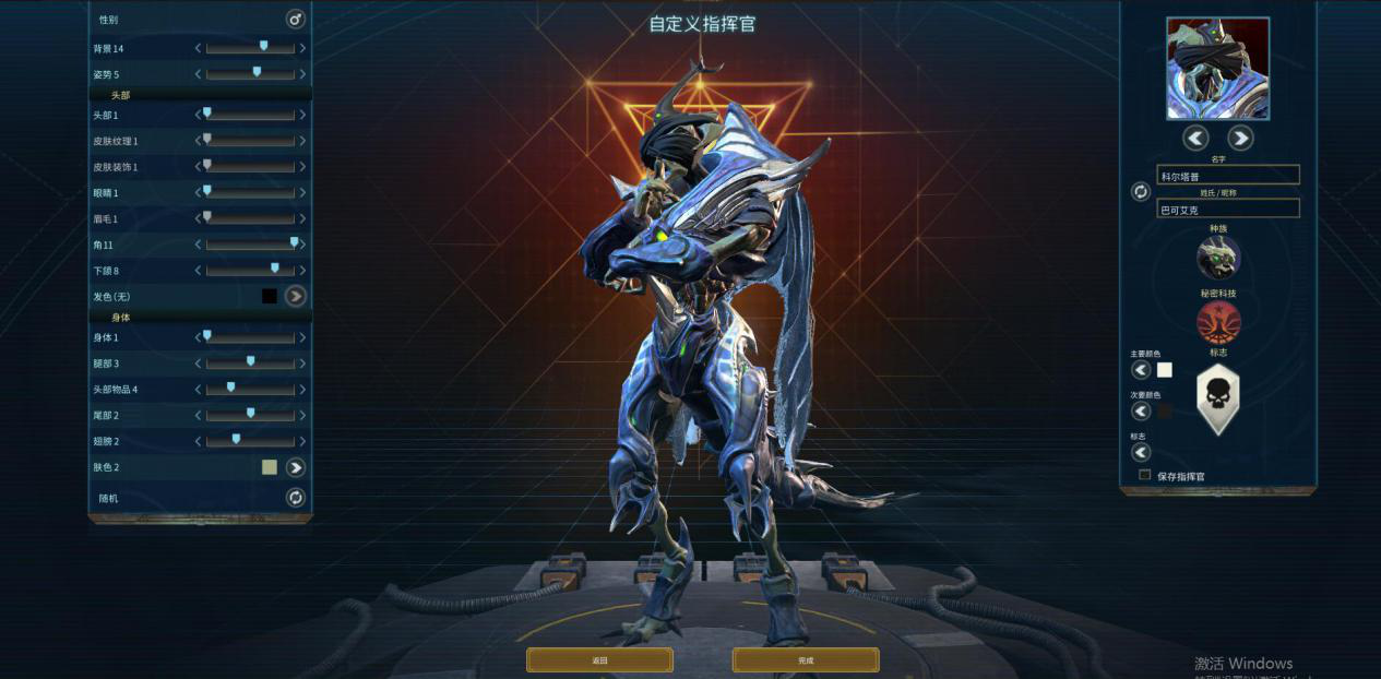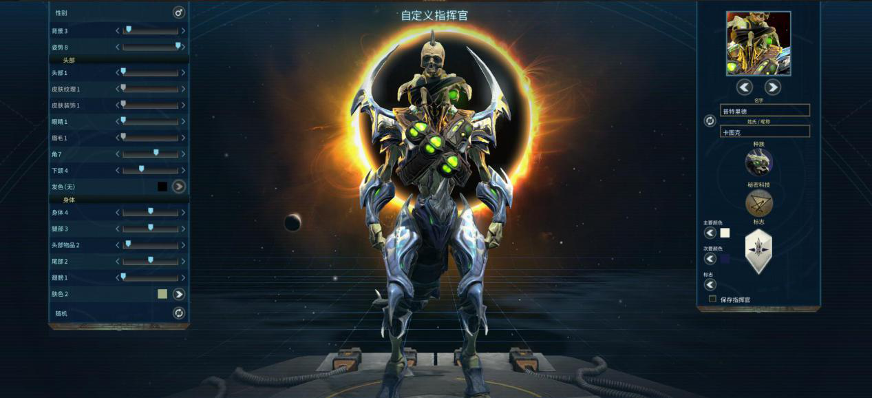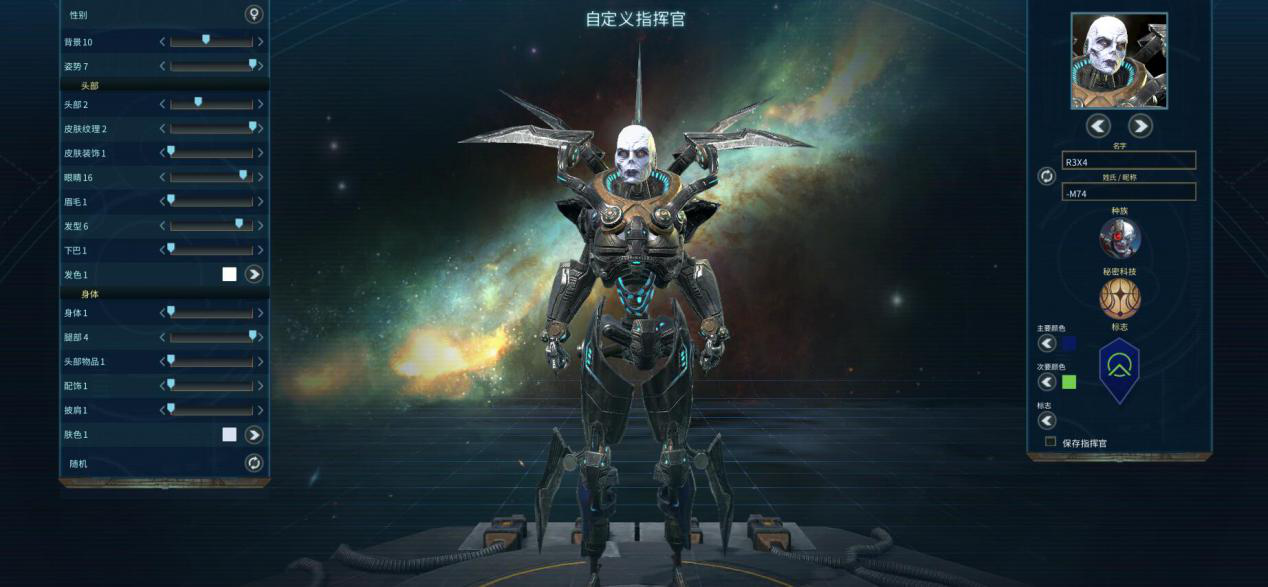 玩家可以自定义种族“指挥官”,游戏提供了六个可选种族,每个种族都有独特的天赋能力,同时游戏中包含了七种“秘密科技”,每一种秘密科技都将带来截然不同的战斗与发展方式。
