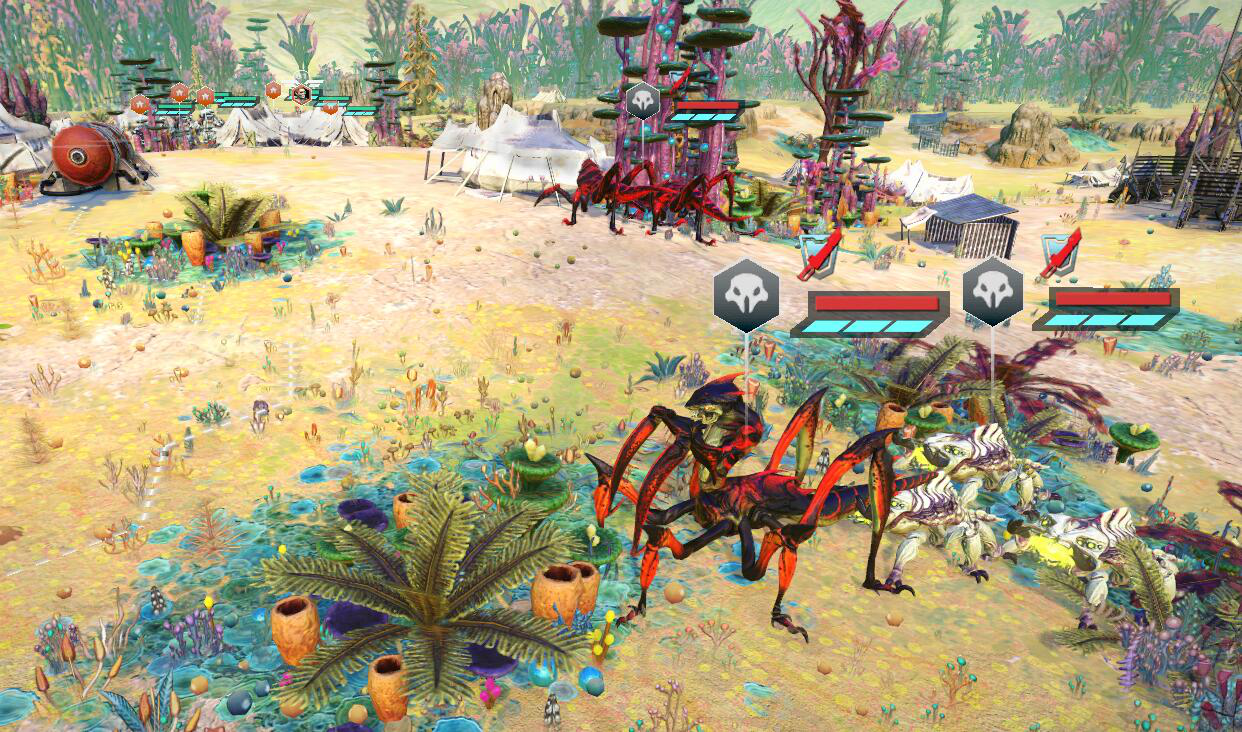 军事研究还可以让根据玩家的种族学到截然不同的“战术”,战术就是指挥官的“技能”,在经过一回合的准备后 玩家可以耗费战术点来释放足够改变战局的强力技能,例如虫族可以投放一个生化药剂来腐蚀对手的护甲,并让他们减速,这样己方的远程兵种就可以高枕无忧的尽情输出。随着军事科技树的发展,玩家将获得愈发强力的战术。
