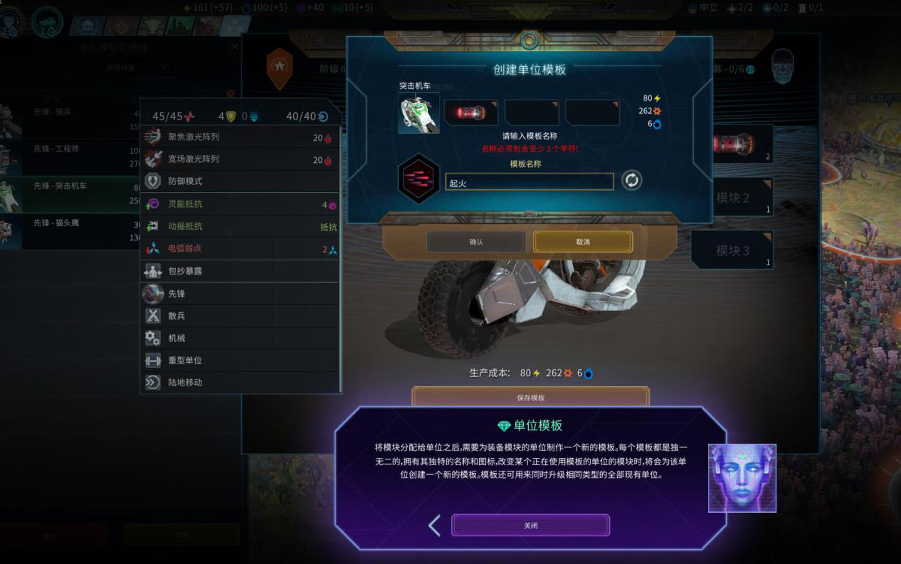除去自定义指挥官,游戏中其他自定义要素也不少,部队同样可以通过装备五花八门的“模块”来自定义,可以把它理解成RPG游戏里的装备,例如一个装配上一个“喷火器模块”之后,该单位就可以附带火焰伤害,而三个模块栏可以自定义出千奇百怪的玩法和部队,让游戏多了一些RPG游戏一样的乐趣。