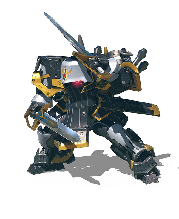 该造型以西洋甲胄为参考。具备骑士高贵的外装充满个性,各机体则是手持刀剑进行战斗。