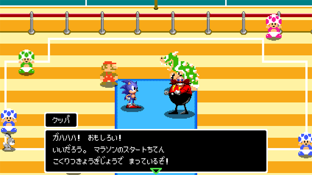 曾在Famicom、Mega Drive上登场过的角色相互竞争。角色的能力值没有差别。