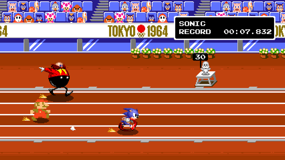 在1964东京奥运竞技中,可以操作怀旧的点阵角色进行游戏。