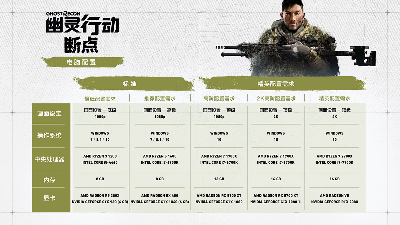 《幽灵行动:断点》将于2019年10月4日登陆Xbox One(包括XboxOne X)、PS4以及PC平台。