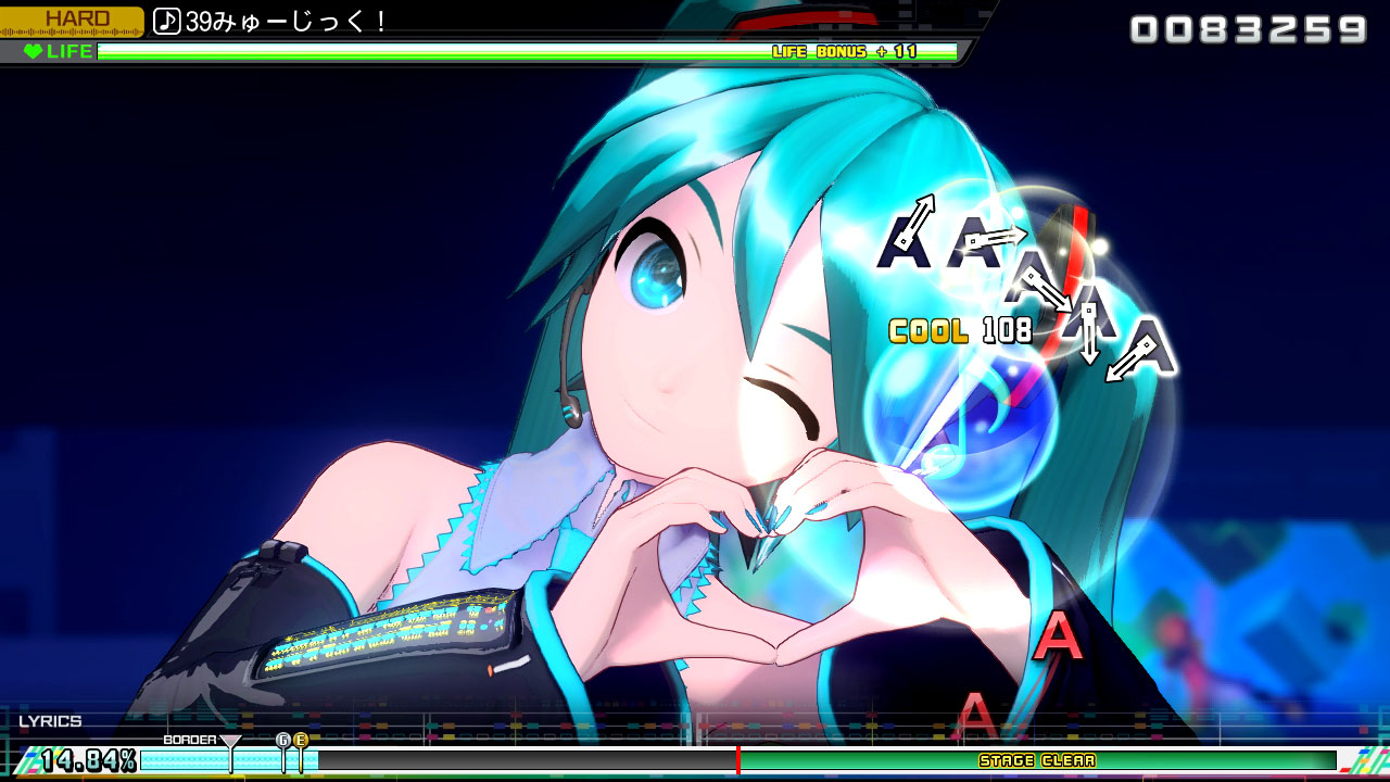 《初音未来:歌姬计划 Mega39's》的节奏游戏除了有玩法接近《初音未来:歌姬计划FT》的“街机模式”外,还可使用新推出的“MIX模式”,享受Nintendo Switch才有的崭新玩法。