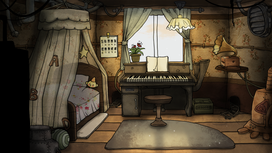 游戏中的音乐经过精心挑选,裁剪,力求为玩家带来最好的听觉享受。为了增加玩家的沉浸感 ,游戏中可互动的物体,例如抽屉、冰箱、水龙头等,均带有音效。因为游戏的剧情发生在主角家中,所以游戏的背景音乐选用舒缓的钢琴曲,为玩家营造温馨、舒缓的游戏气氛,也契合蒸汽朋克背景的古典韵味。