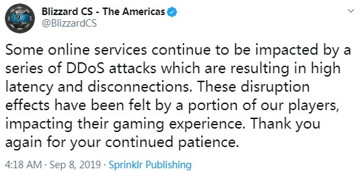 而在攻击前20到30分钟,一个名为@UkDrillas的推特账号曾发出提前警告,并宣布为此次事件负责,目前国外网友猜测,该黑客应该是对《魔兽世界》新版本的十分不满,怀着对暴雪的的愤怒促使了这次黑客攻击。