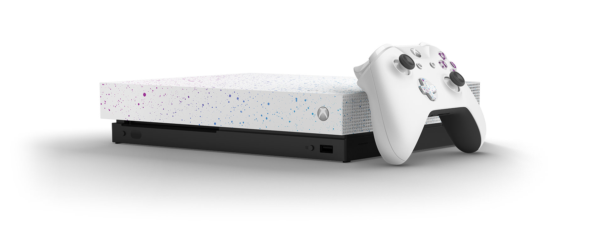 这款《NBA 2K20》主题Xbox One X主题颜色为白色,机身点缀着蓝色与紫色的斑点,外观十分清新自然。