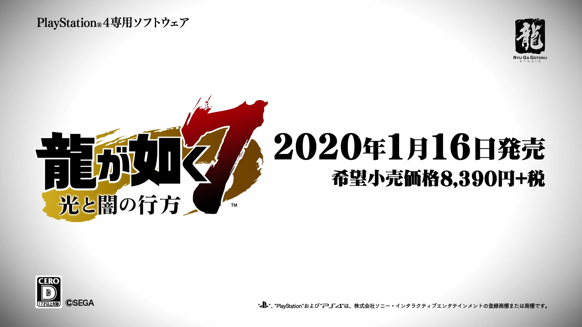 《如龙7:光与暗的去向》正式版将于2020年1月16日正式,发售登陆PS4平台,该作中文版将同步发售。官方也在最后公开了该作的售价为8390日元(约合人民币536元)。
