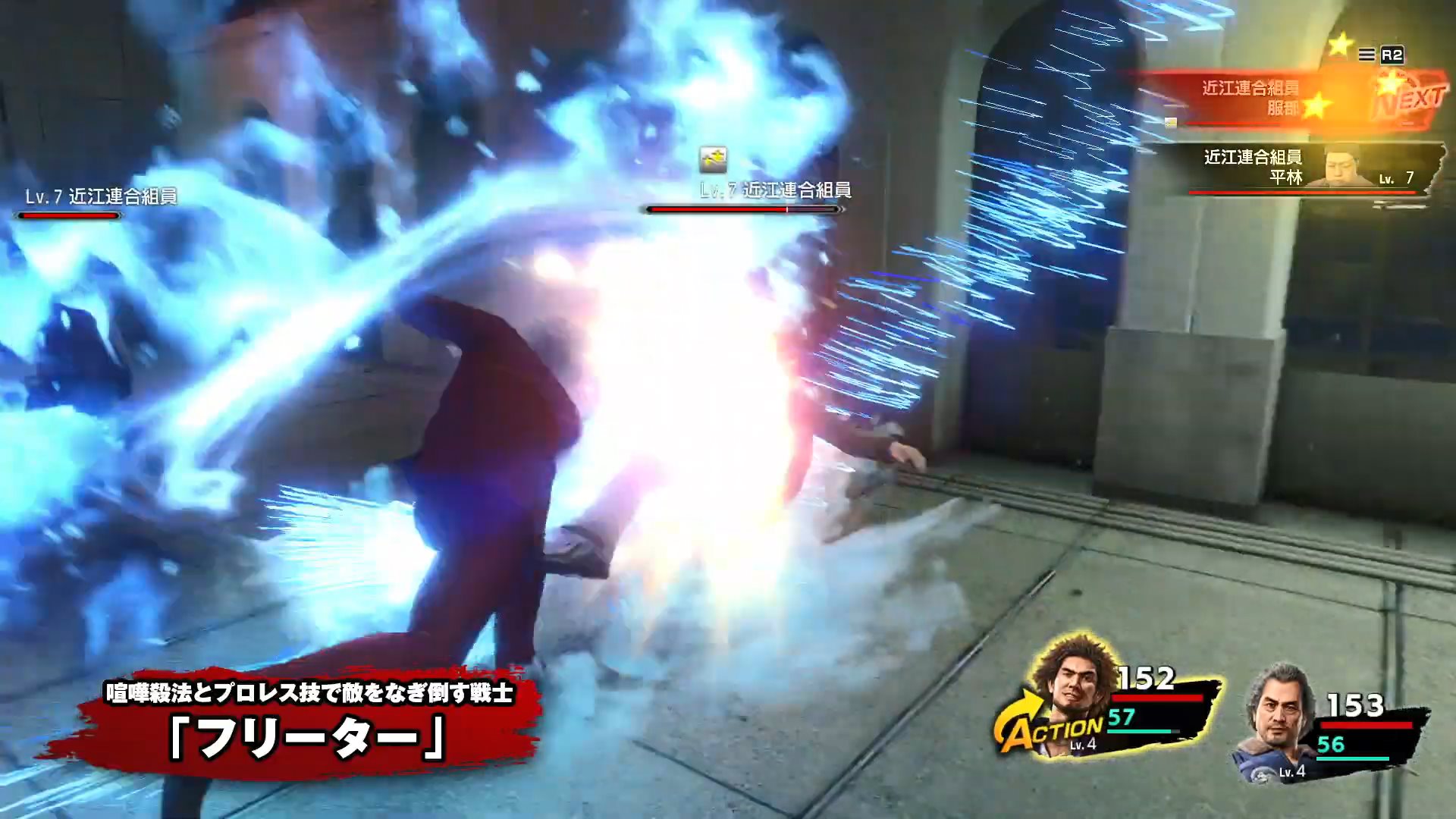 《如龙》系列的前代主角桐生一马和真岛吾朗在该段宣传片中惊喜亮相,真岛吾朗还使出了一招听上去就非常中二的“紫电鬼炎刃”。
