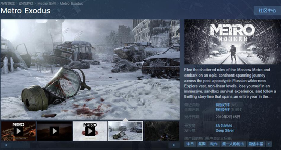 开发商4A Games今天证实,在Epic游戏商店独占发行一年之后,《地铁:逃离》将进军Steam。本月晚些时候(2月15日)就可以下载了。