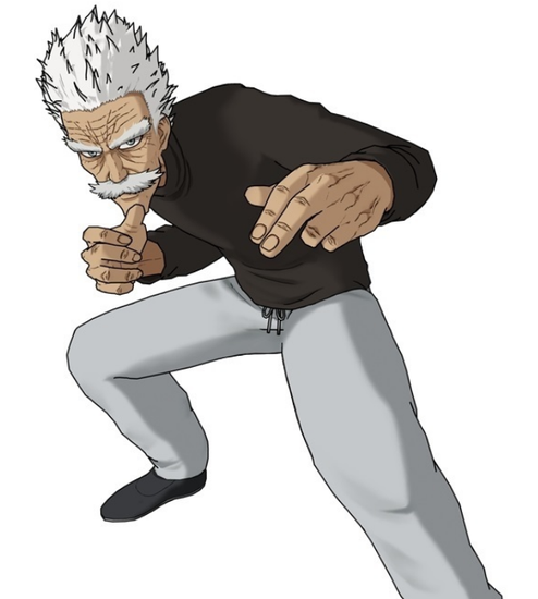 拳法‘流水岩碎拳’的好手,年事已高却仍以犀利的技术与千锤百鍊的身体为武器战斗。本名邦古,开设了流水岩碎拳的道场招收徒弟,曾邀请埼玉跟杰诺斯等英雄加入。他并非使用特殊能力而是以拳法战斗。因此并不会使用飞行道具等远距离招式,而是以近身战为主要战斗方式。在游戏中切换模式后会赤膊,能见识到完全不像老人家的强健肉体。