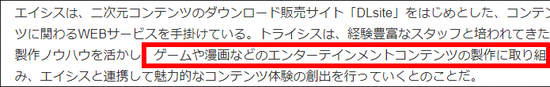 ·号称日本最大级别的二次元综合贩卖网站DLsite是二次元动漫御宅们的圣地,其母公司今日宣布成立新的子公司《trisys》,官方表示,《trisys》将发挥众多经验丰富的员工的特长,活用多年积累的知识,致力于原创游戏以及漫画的娱乐产业制作,和DLsite互相配合打造新的宅玩基地。