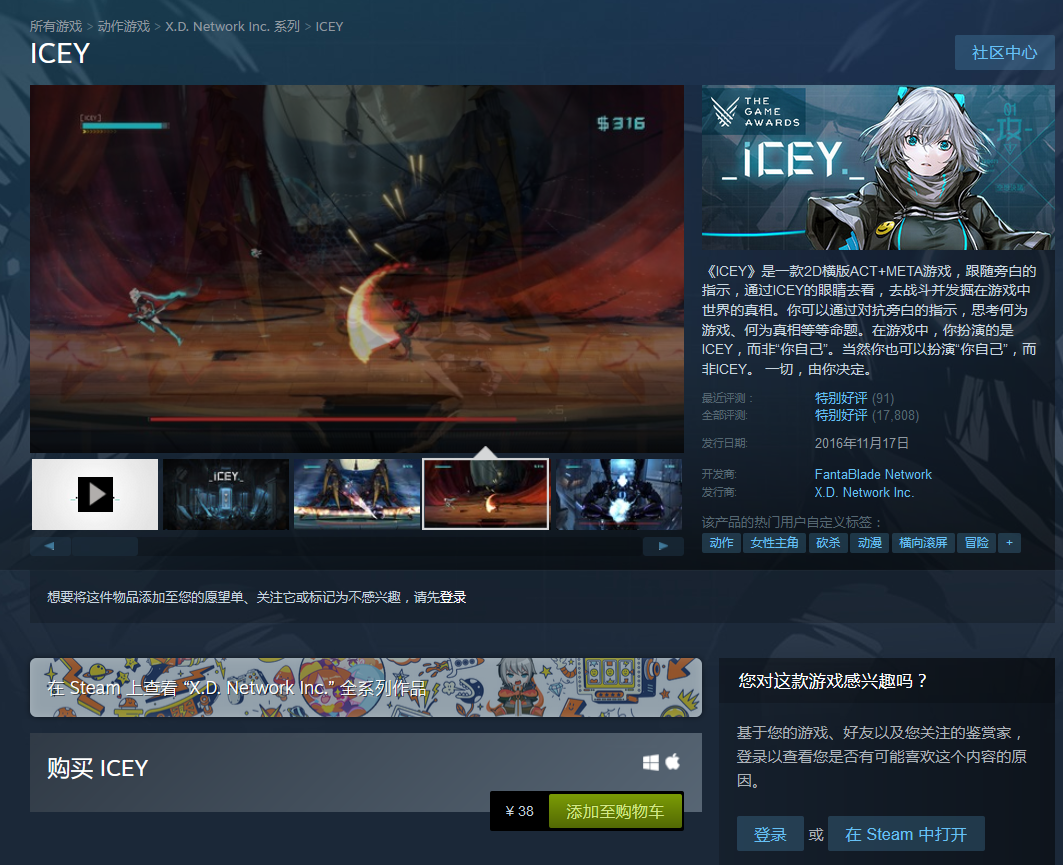 2019年5月3日,我们报道了“《ICEY》官宣Steam暂锁国区是为补充版号”的相关消息,2020年3月24日,“国产游戏《艾希》过审,版号下发”。而根据新消息,《艾希(ICEY)》现已重新上架Steam国区商店,一年前在Steam国区下架的《艾希(ICEY)》已经回归。