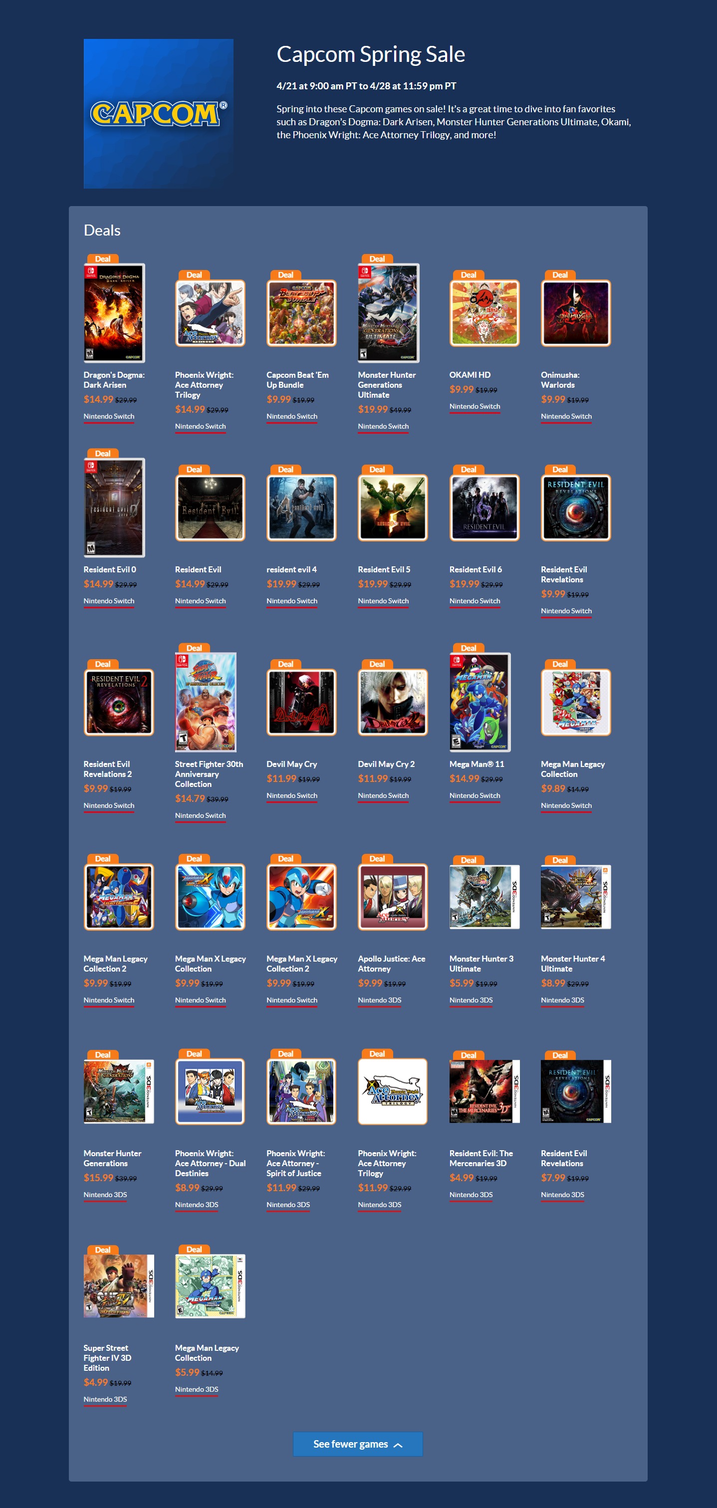 本次特惠将于4月29日15:00结束,想要在 Switch 平台入手 CAPCOM 游戏的玩家们不妨趁此机会购入。