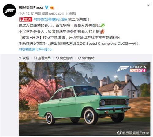 除了冬季赛之外,在本周,#极限竞速摄影比赛#正在微博火热开启中。随着春天的到来,英伦大地也被春意所覆盖。现在,玩家即可在游戏过程中,截取自己喜爱的,带有花的游戏截图,参与到#极限竞速摄影比赛#活动之中。届时,官方@极限竞速Forza将筛选5名玩家,为其送出激萌可爱的极限竞速LEGO Speed Champions DLC一份,让玩家在乐高的世界中,感受一份别样春意!