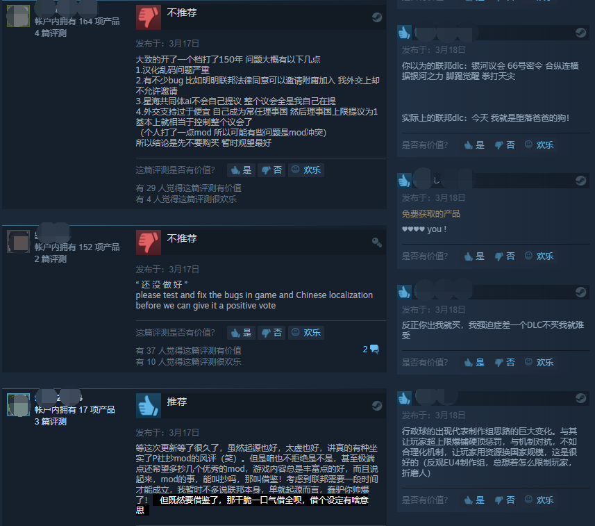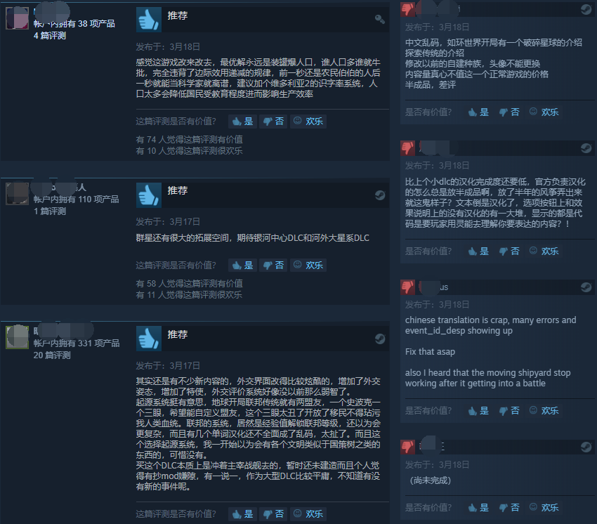 当然也有不少克服上述困难硬啃了的玩家对P社的此次尝试给出了肯定,认为该DLC尚不完整,但同时显现出拓展的空间很大,可以期待日后的填补和对汉化的修正。