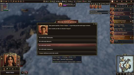 ·作为《文明4》设计师参与的作品,这款《旧世界》从视觉效果上确实有浓厚的《文明》风格,但玩法上的差别还是比较明显。玩家控制帝国的掌权者并不是永生,在死亡后会由玩家培养的继承人接任。每一回合可以执行的总操作次数也有限,要求玩家更加合理的在前期进行布局。