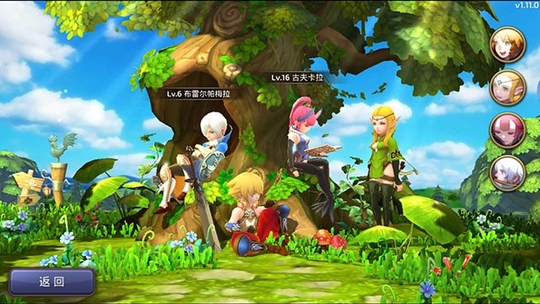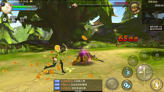 操作方面上,非战斗情况下,在左半面屏幕滑动可控制角色移动方向,在右半面屏幕移动可以转动任意视角,角色的移动和释放技能非常流畅没有卡顿现象。在主城里玩家可以点击NPC进行聊天、接交任务,也可以点击其他玩家进行添加好友、切磋等操作。目前右下角开启的功能为制作、精灵、技能、角色。