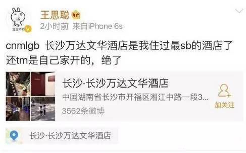 2016年7月,校长莫名其妙的发了一个喷自己家酒店的微博,看得网友一阵懵逼。虽然很可能是父亲王健林的压力,校长很快删除了这条微博,但是时刻关注着校长的网友自然是不会放过这样一个有趣的谈资。这一微博轻松的成为了网友公认的当代最坑爹微博,甚至有网友按格式揣摩了王健林的心思:这是我见过的最xx的孩子了,还TM是自家生的,绝了。
