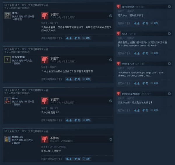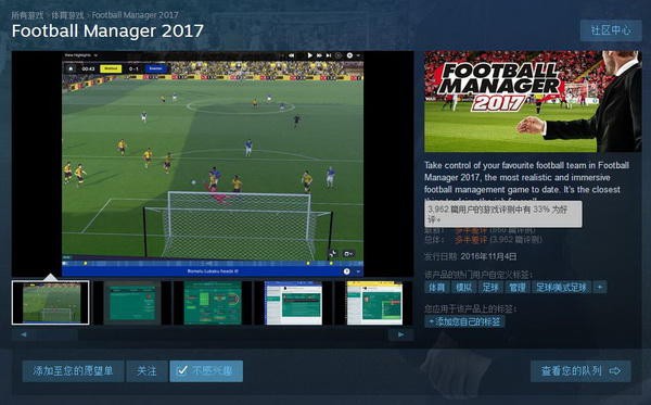 中国玩家常会以没有中文版为由在Steam商店里为游戏打差评,其中《足球经理2017》的汉化风波引发了不小的关注。