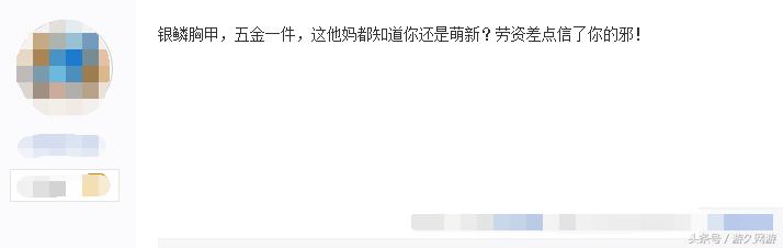 银鳞胸甲,五金一件。多么令人怀念的故事啊,又想起了当年看我叫MT的快乐时光。这个梗都知道,我真不信是萌新!