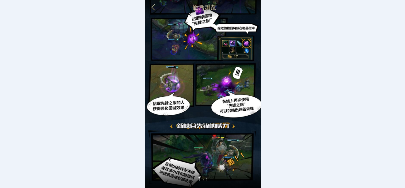 拾的峡谷先锋之眼的人会获得强化回城的效果,并且可以再次使用峡谷先锋之眼召唤出峡谷先锋。召唤出来的峡谷先锋会对小兵和防御塔造成高额的伤害。