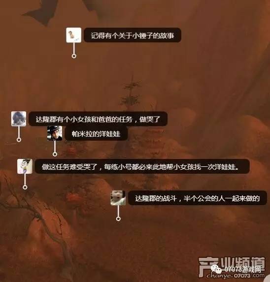 还有人记得这个东瘟疫之地的可怜的小女孩吗?07073小编觉得,这是比爱与家庭更让人感动的任务。上面那条留言就是我写的,从公测第一天到现在,联盟部落的号玩了十几个,每个号都要过来帮帕米拉找一次洋娃娃。经历了无数次版本更迭,这个经典任务依然存在。给暴雪点赞!