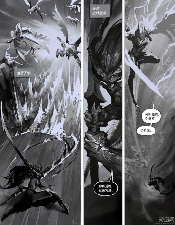 近日,《英雄联盟》推出了一组锐雯和亚索的皮肤,冠上的名头一个是黎明使者,一个是黑夜使者。从字面意思上来看,两者明显是对立的存在,那么这里面究竟有什么故事呢?今天,官方公布了一组背景漫画,介绍了整个事件的背景,而纠缠了亚索和锐雯一生的恩怨也在此画上了句号。