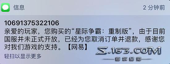 官方的退款信息回复:亲爱的玩家,您购买的“星际争霸:重制版”,由于目前国服并未正式开放,已经为您取消订单并退款,感谢您对我们游戏的支持。[网易]
