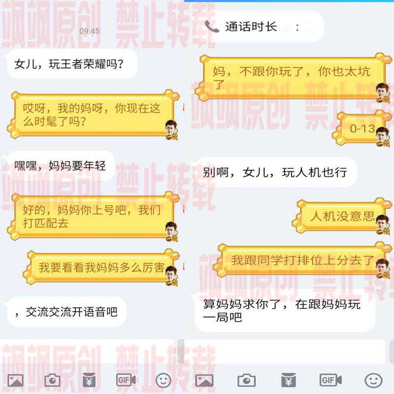 妹子说自己突然收到了妈妈发来的消息,要跟自己玩王者荣耀。妹子表示自己看到后十分的震惊,什么时候妈妈开始玩王者荣耀了,什么时候妈妈变得这么时髦了。于是自己就跟妈妈开了一句匹配,并且开着语音玩耍。游戏结束的时候,因为妈妈0-10,自己就不准备跟妈妈玩了,要去跟同学打排位