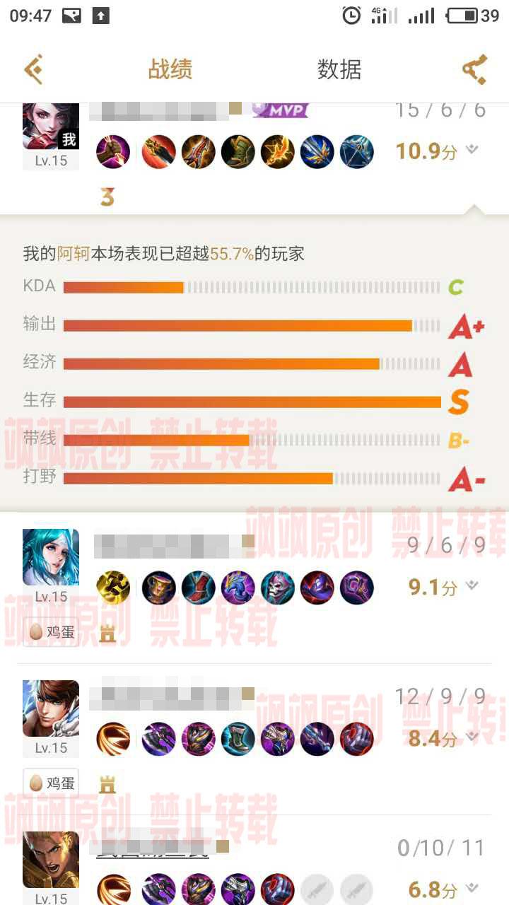 这是妈妈的战绩,从妈妈的操作和出装当中能够看出妈妈根本不会玩这个游戏。因此自己不想跟妈妈再一起玩了。