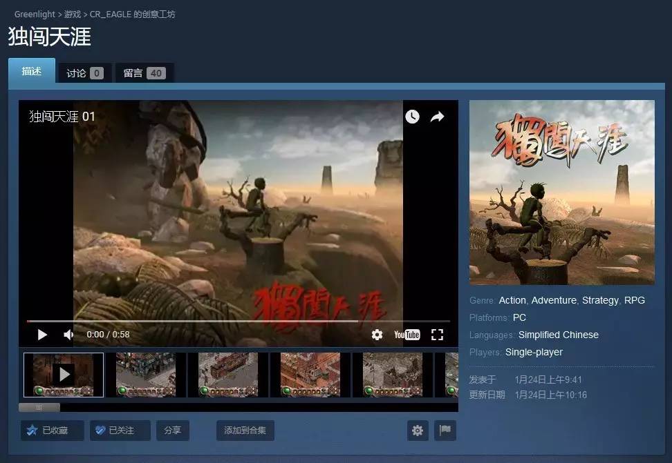 《独闯天涯》,这款17年前由国内游戏厂商创意鹰翔制作的游戏,在1月24日登陆了Steam青睐之光。消息一出,引发了很多玩过该游戏的老玩家的关注。