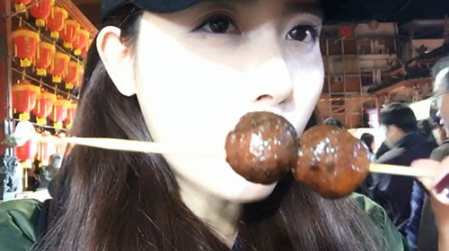 来到夜市后的大表姐展现出她吃货的一面。