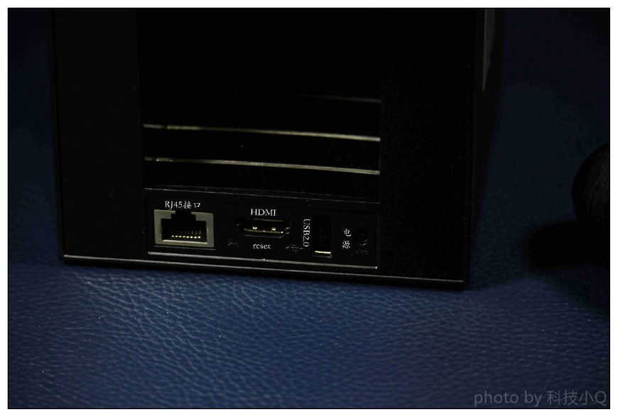 尾部的接口依次为:LAN接口、HDMI接口、RESET键、USB接口、电源接口。